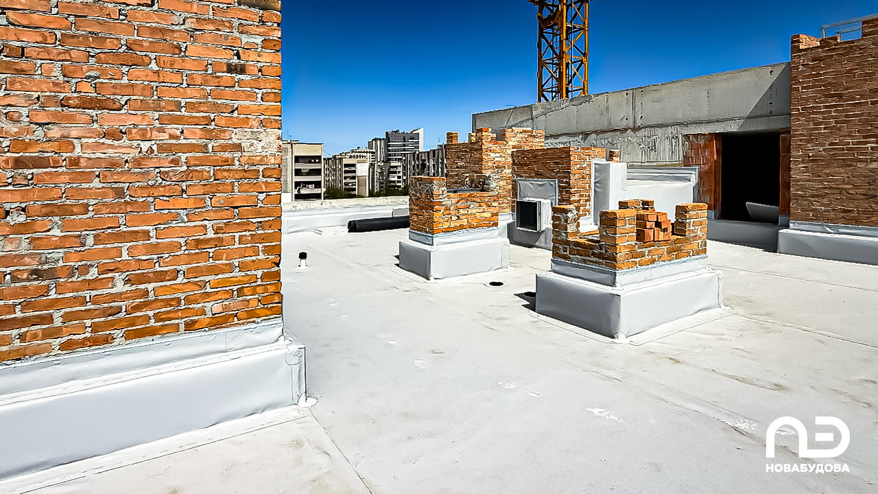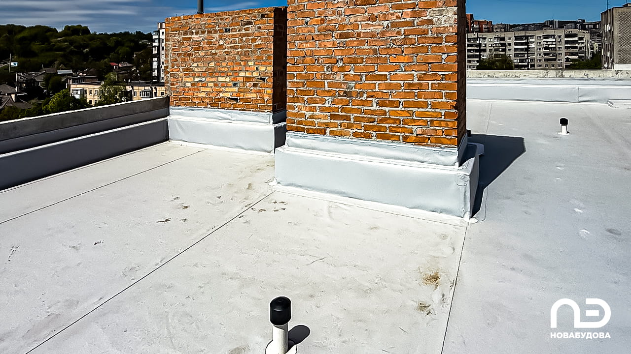 - завершено облаштування гідроізоляції покрівлі з ПВХ-мембрани;